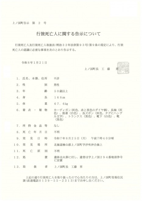 住民課住民環境グループ 電話 0139-55-2313 ( 内線 267 )
