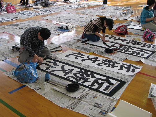 1月9日、町民体育館において新春書初め席書大会が開催され、75名の参加がありました。