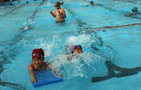子供たちは元気に泳ぎ回ったりボール遊びをして、とても楽しそうです。