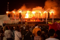 完全に日が落ちると、定番の『上ノ国音頭』が中央の櫓を中心に、来場者皆で一体となって始まり、また、上ノ国鼓友会『龍焔太鼓』に合わせて火まつりを象徴する8本の巨大たいまつも赤々と燃えさかり、最後は花火「天の川ドラゴンファンタジー」が上ノ国の夜空を彩ると、その美しさと散り際の寂しさの余韻を楽しみながら、今年の火まつりは大盛況で幕を閉じました。