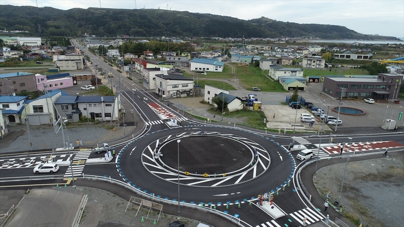 当日は、まだ通行車が不慣れな様子で徐行していましたが、日が経つにつれて徐々に円滑な通行が見られるようになり、国道、道道、町道が接する交差点ですが、スムーズな通行が実現している様子でした。