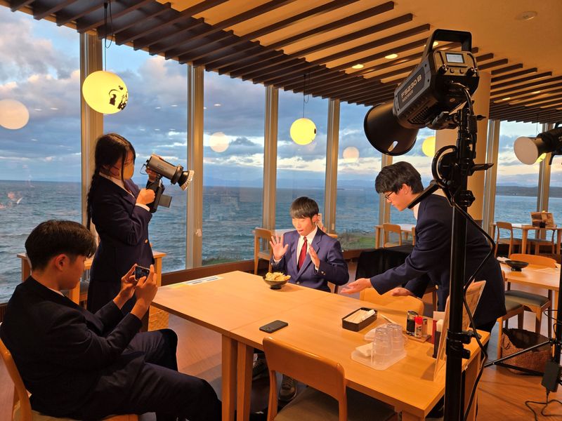 今回はレストランの主要メニューである「てっくい天丼」「てっくい漬丼」「ぶた丼」「海老だしラーメン」の売上アップを目指し、それぞれ15秒程度のCMを制作するため、自分たちで考えたシナリオをもとに撮影📹