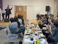 会場では、カラオケやダンスなどの余興が披露され、舞台に立つ出演者に合わせて手拍子が起こるなど、終始明るい笑顔と笑い声に包まれました。🎤💃