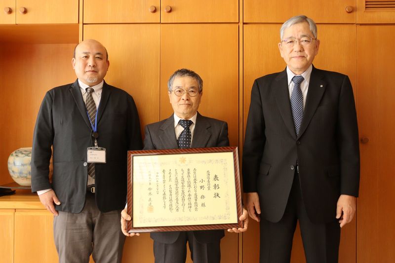 小野修さん(字石崎)が、多年にわたり地域の交通安全運動に貢献してきた功績が認められ、北海道善行賞を受賞しました。