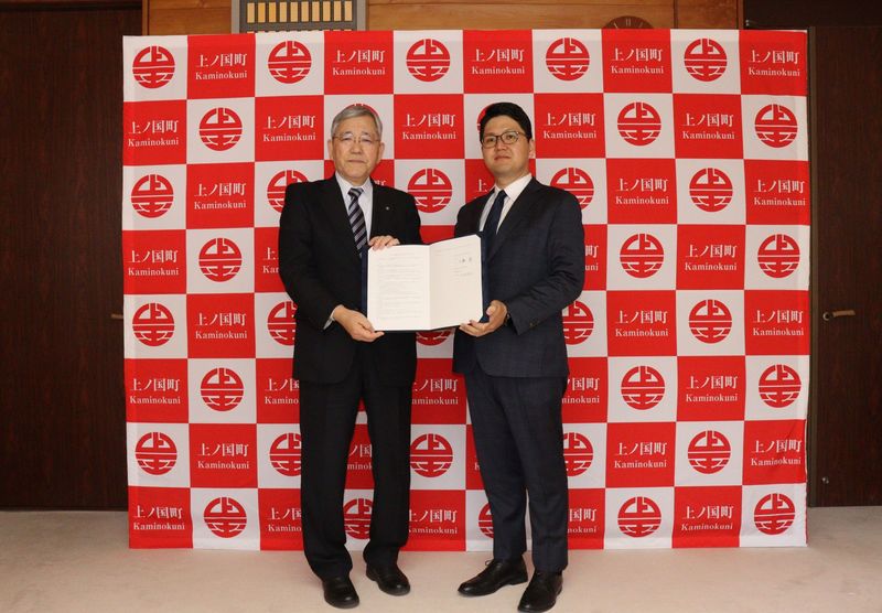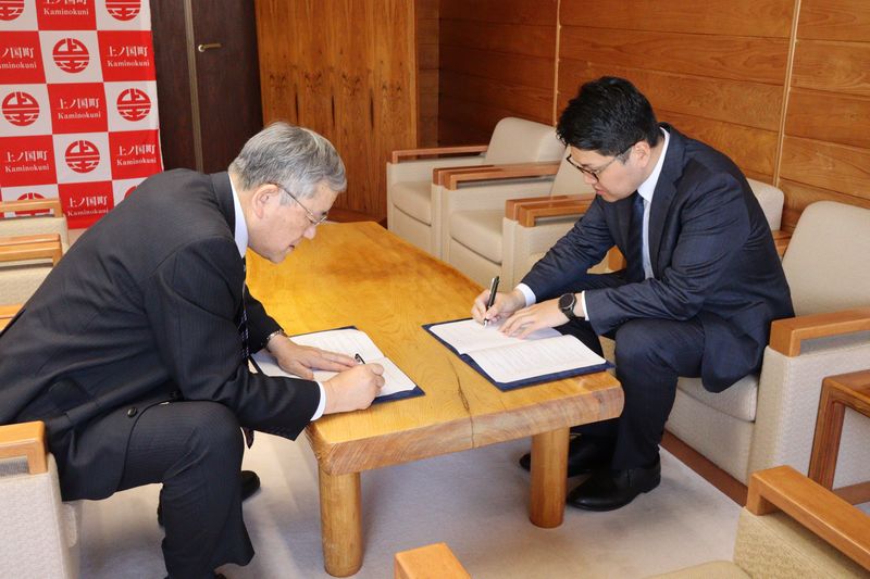 締結式では、同社の角野社長と工藤町長が協定書に署名を行い、今後の方向性や具体的な取り組みについて確認しました。