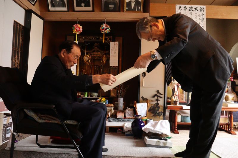 3月31日(火)、長年にわたり地方自治の進展に尽力された功績が認められ、鈴木政秀さん(字宮越)が旭日単光章を受章し、工藤町長より賞状と勲章が伝達されました。